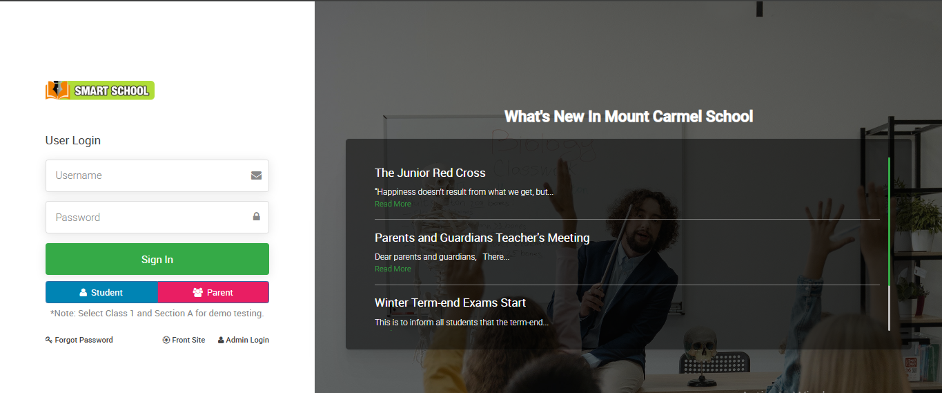 Enter the student's Username and Password, and then click on the 'Sign In' button to successfully login in to the student panel.