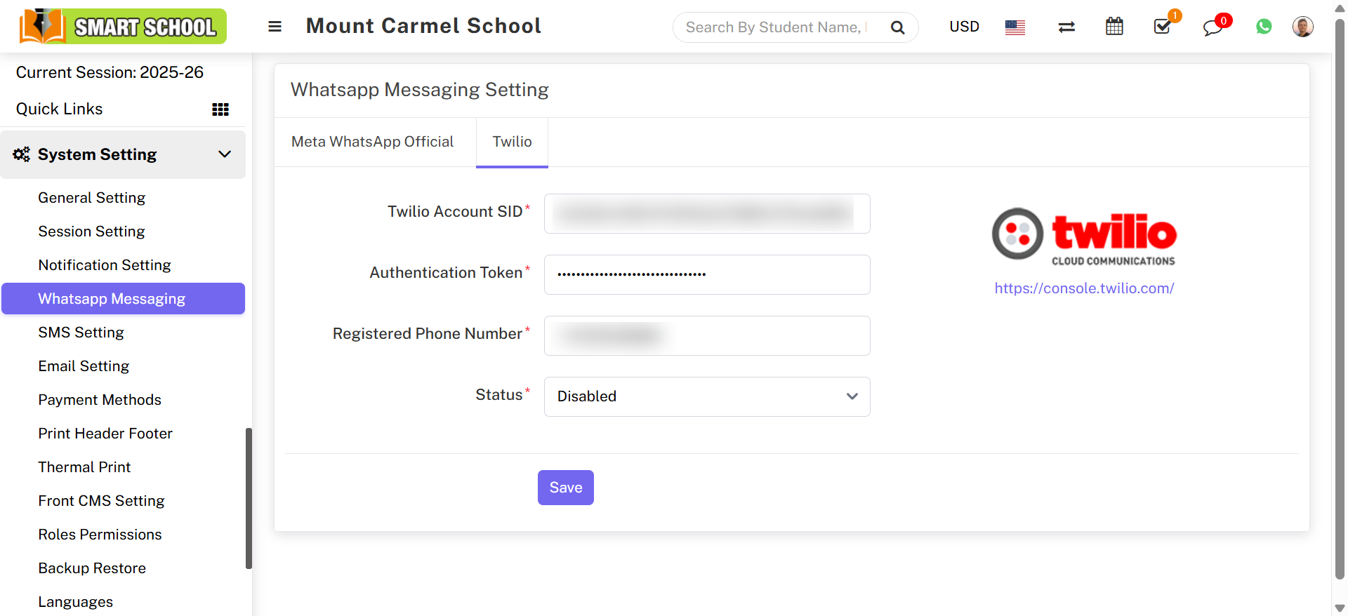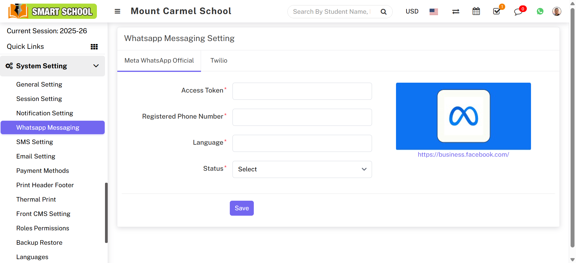 Smart School supports two WhatsApp service providers: